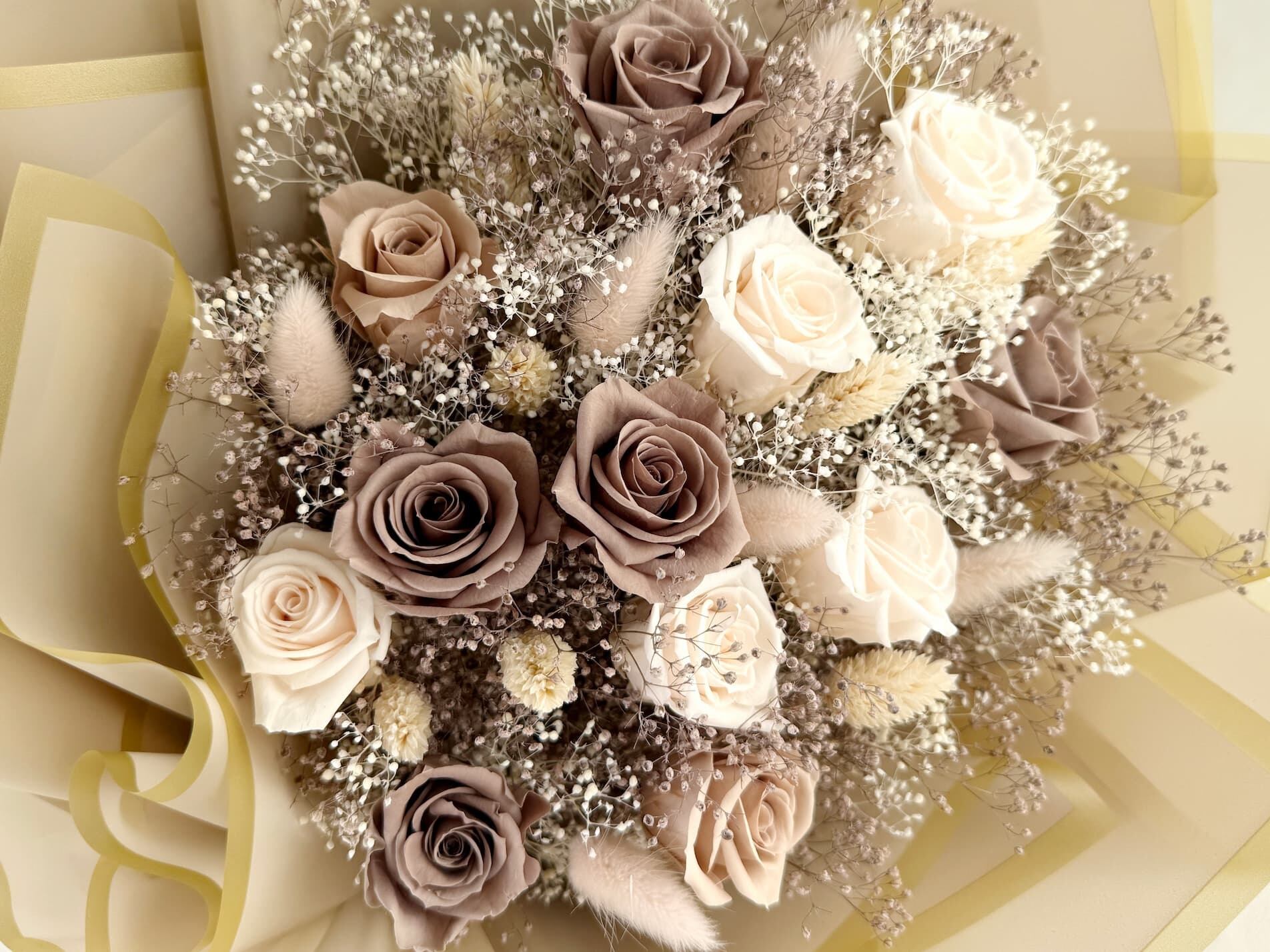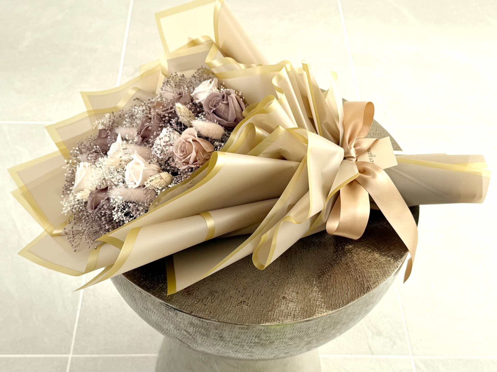 Taupe(トープ)|プロポーズブーケ/12本のプリザーブドローズ グレージュ
