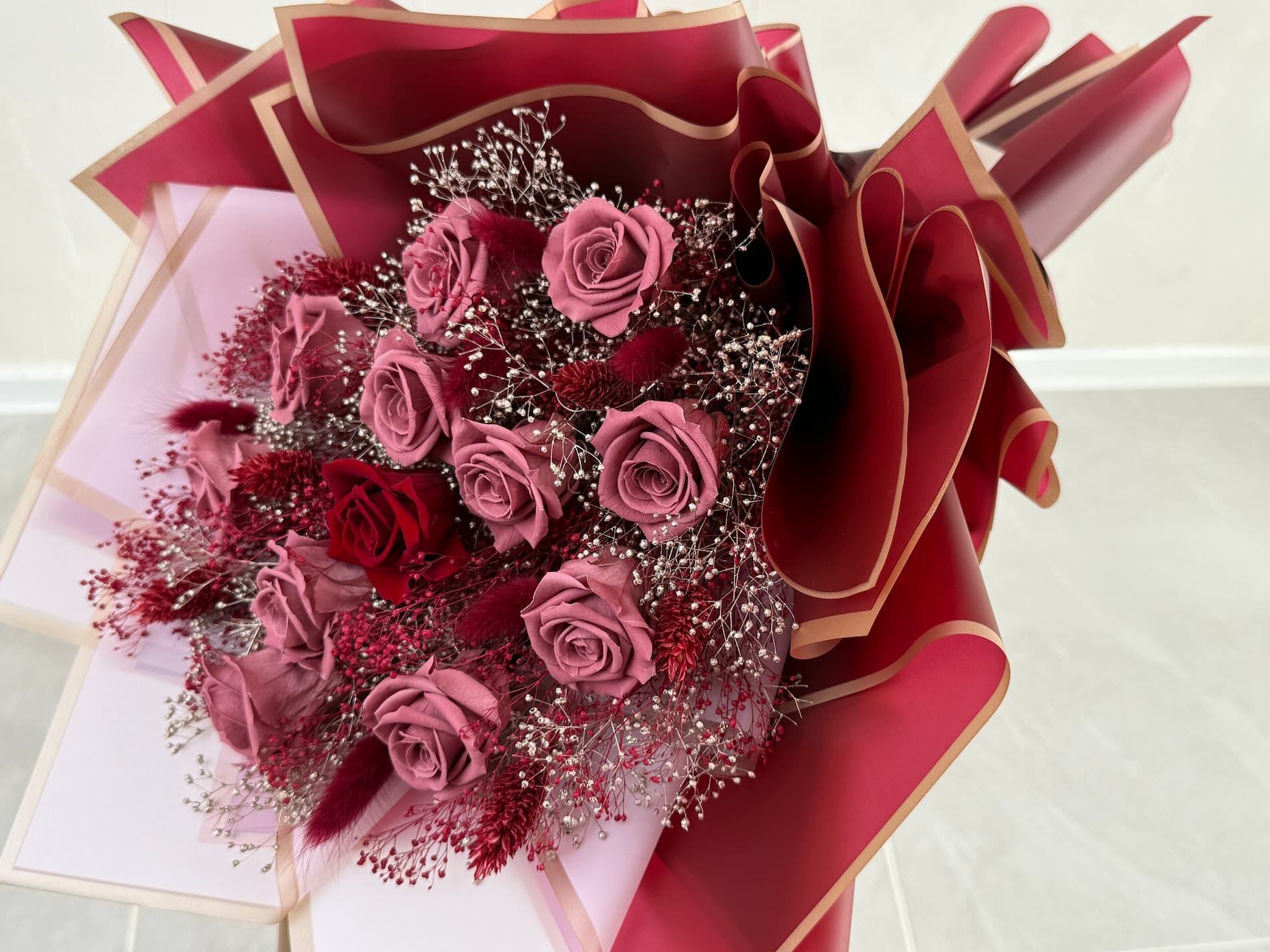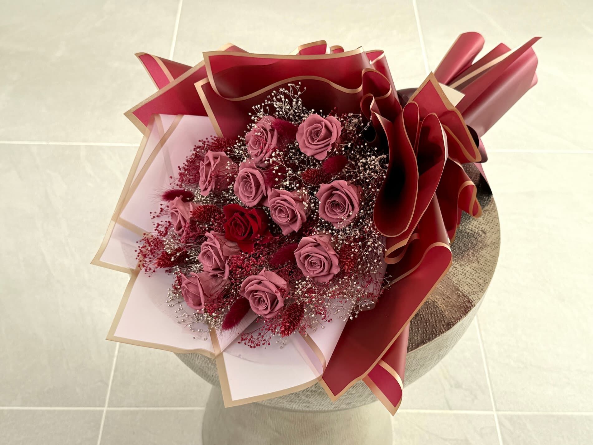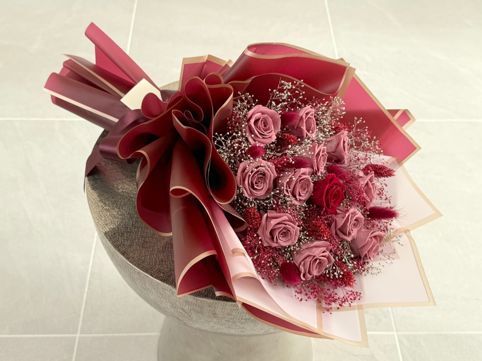 Flamingo(フラミンゴ)|プロポーズブーケ/12本プリザーブドローズ ピンク・レッド