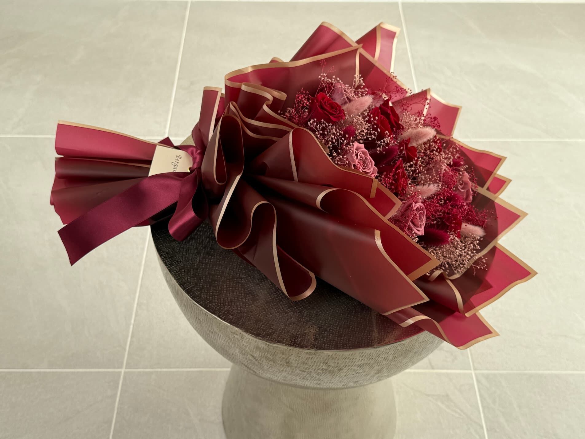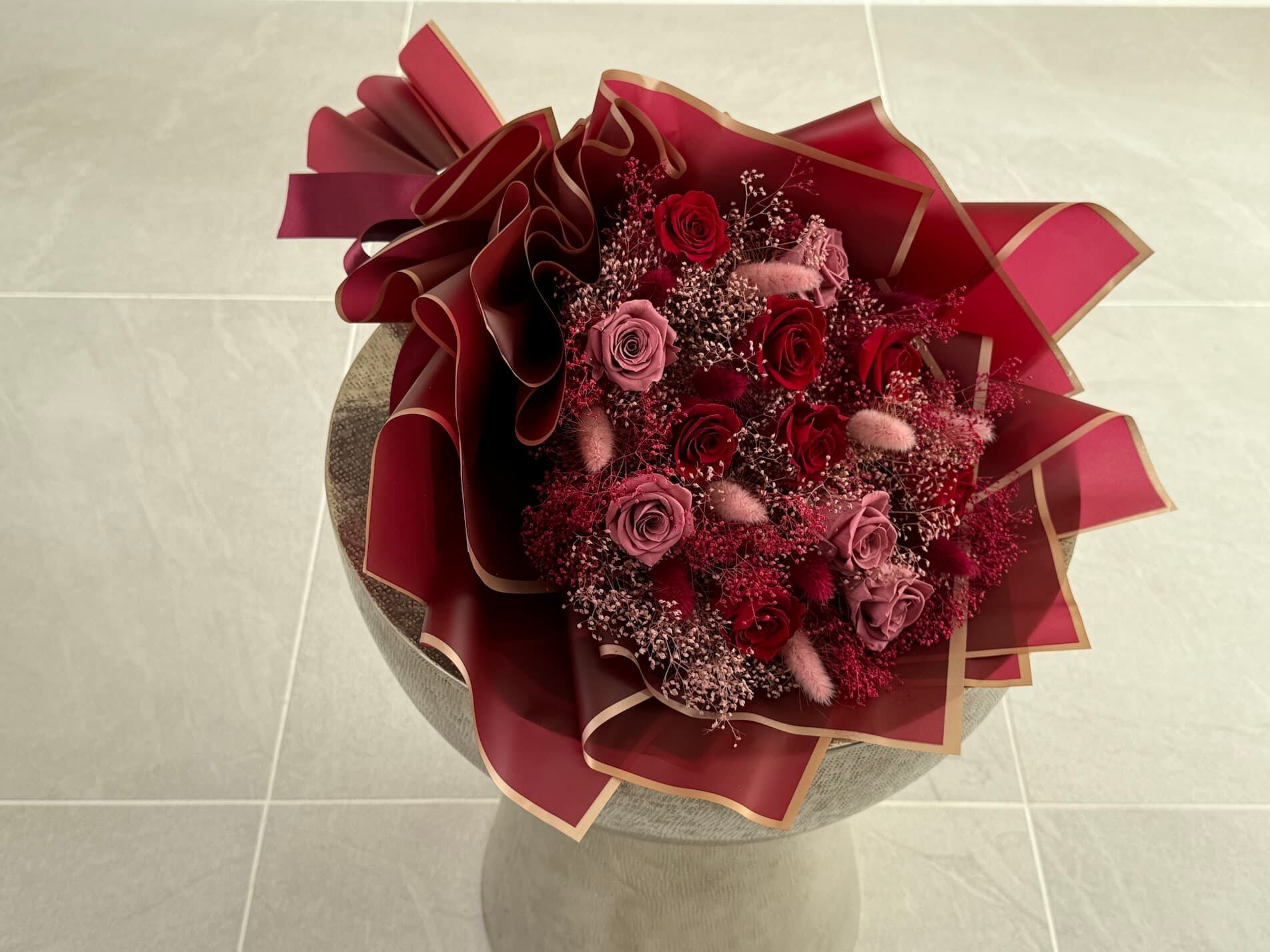 Rosé(ロゼ)|プロポーズブーケ/12本のプリザーブドローズ レッド × ピンク