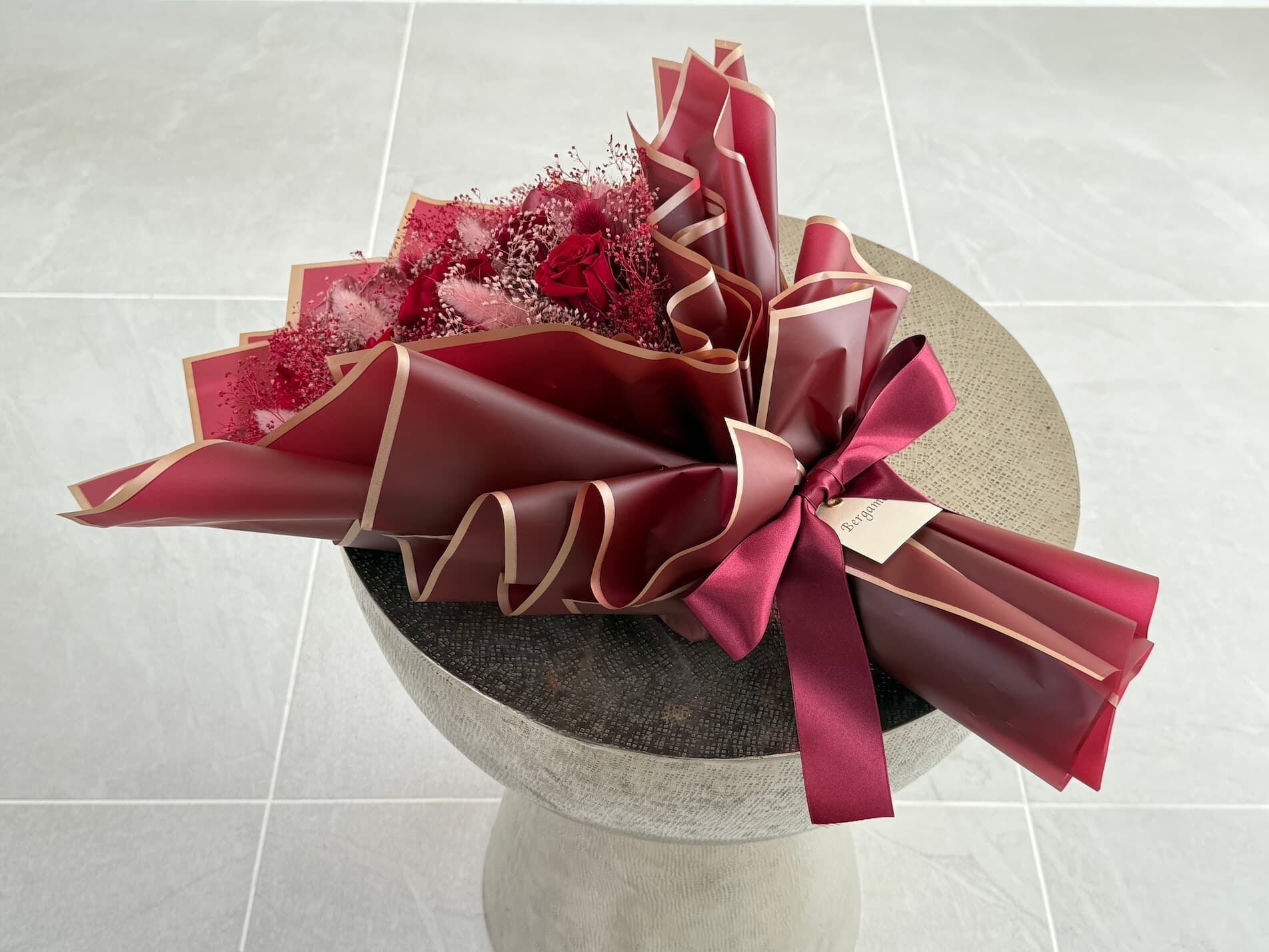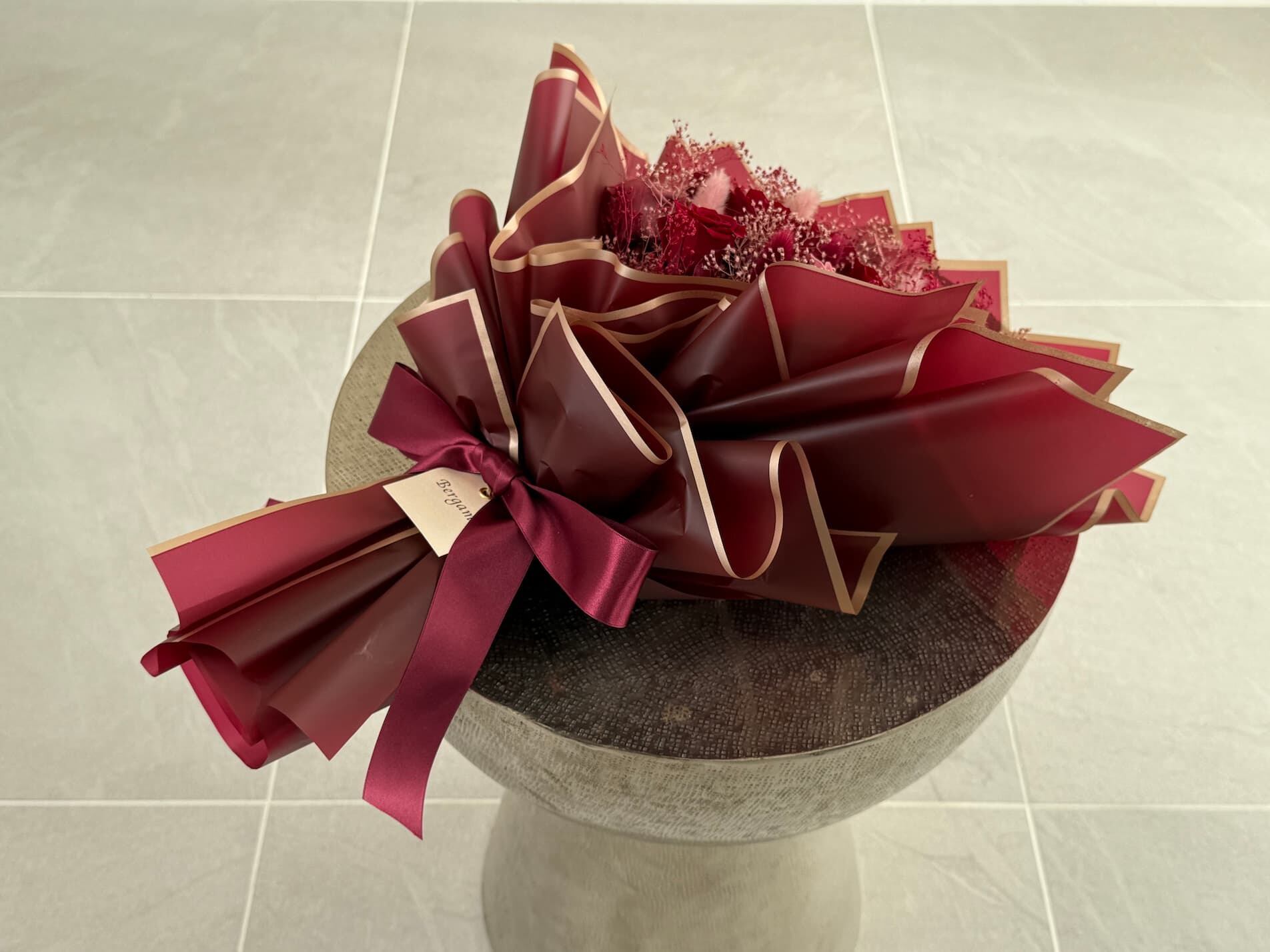 深いレッドが想いの強さを、淡いピンクが穏やかなぬくもりを映し出し、ふたつの色が寄り添うように、豊かな愛情を静かに伝えます。
